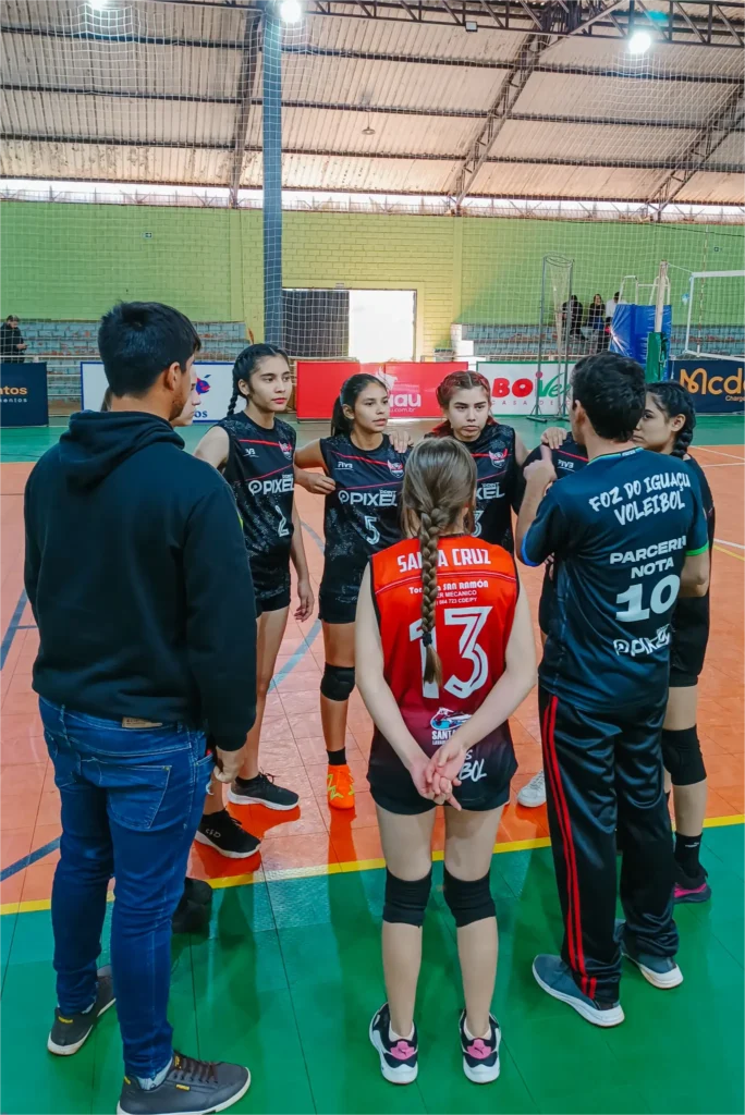 El equipo masculino de Cuervos también tuvo una jornada intensa en Brasil. En su primer enfrentamiento, se midieron ante Barão, en un duelo que se prolongó a tres sets, mostrando la tenacidad de ambos equipos. El equipo de Cuervos inició con fuerza, llevándose el primer set 20-25, lo que generó grandes expectativas. Sin embargo, Barão no se dio por vencido y logró empatar el partido al ganar el segundo set 26-24. Finalmente, en el tercer set, en un desenlace emocionante, Cuervos cayó 15-13, en lo que fue un partido lleno de adrenalina y emoción. Más tarde, en el cierre, el equipo masculino enfrentó al experimentado Foz do Iguaçu, dirigido por el reconocido entrenador Alesson Fontana. Este fue el encuentro más difícil del día para Cuervos, ya que Foz, con su vasta experiencia y dominio técnico, logró imponerse 3-0. A pesar del resultado adverso (25-23, 25-18, 25-19), el equipo paraguayo no dejó de luchar y demostró que pueden competir de igual a igual, incluso contra los rivales más fuertes. Como bien lo expresó el entrenador de Cuervos, Ariel Jara, al final del encuentro: “Vamos a seguir trabajando para mejorar y esperamos volver a jugar contra Foz”